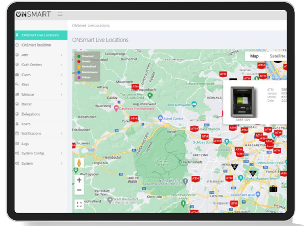 ON-Smart’s remote management capabilities vary from collection of event logs, remote update of system software, updating system configuration parameters, remote CIT key management until remote activation of system in case of duress situations.